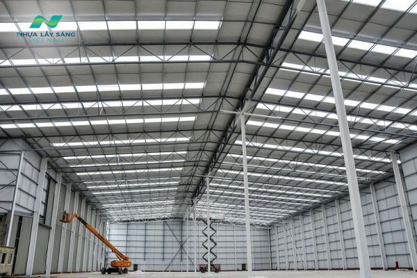 Lợp Mái Lấy Sáng Nhà Xưởng, Nhà Kho: Cung cấp ánh sáng tự nhiên cho khu vực sản xuất, kho bãi, giúp tiết kiệm điện năng và cải thiện môi trường làm việc.
