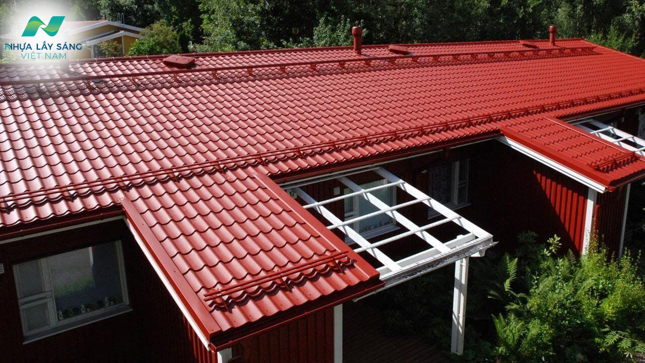 - Tấm lợp nhựa PVC phủ ASA màu đỏ.